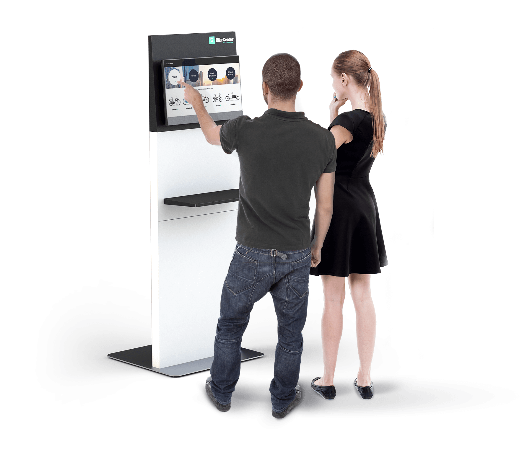 BikeCenter Beratung bei Radfalk! Gerne stellen wir Ihnen unsere Bikes auch am 44-Inch-Touchscreen vor, Datenblatt zum Mitnehmen inklusive. Damit erhalten Sie einen schnellen visuellen Eindruck Ihres Traumbikes – so geht Beratung 2.0!